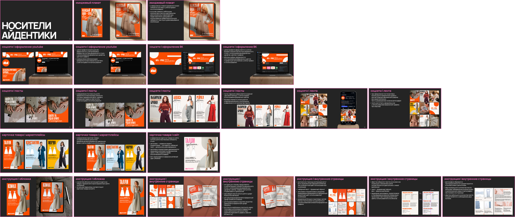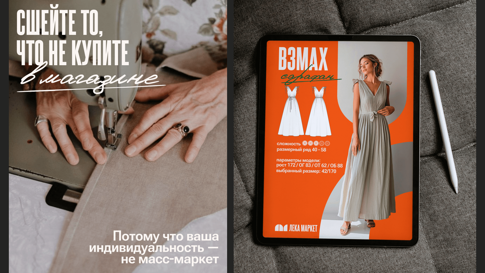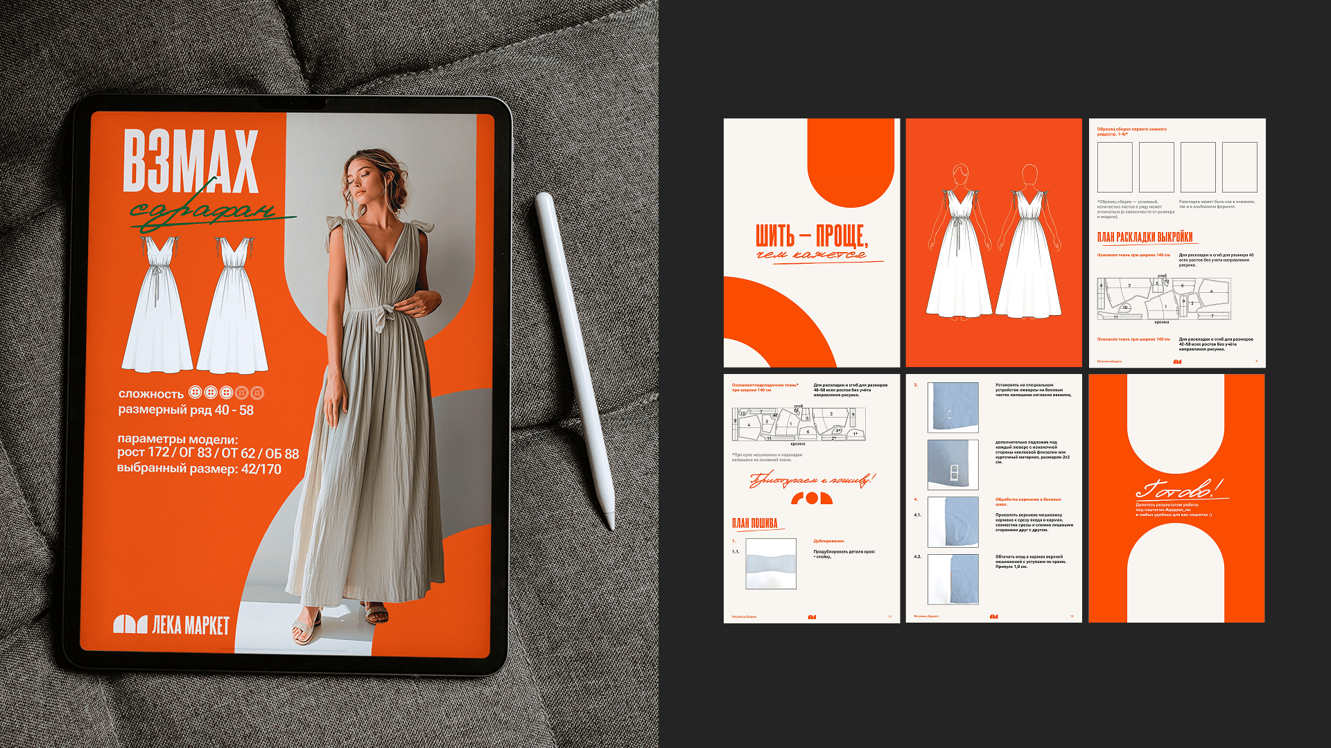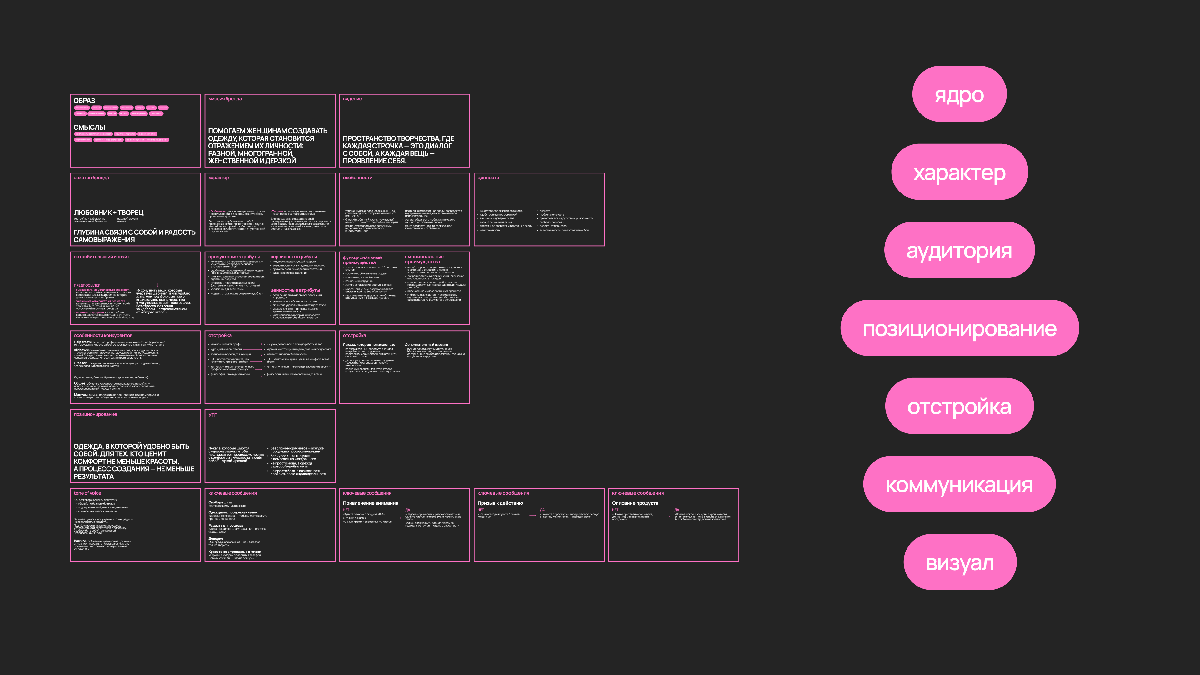 Из этой сути выросли опоры, которые дальше задают подачу и стиль: тёплая поддержка как от близкой подруги, уверенность без назидания, баланс практичности и самовыражения, ощущение «у меня получится». И позиционирование: лекала, которые шьются с удовольствием — чтобы носить с комфортом и чувствовать себя собой, яркой и разной.